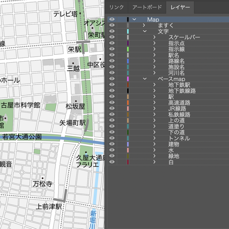 愛知 名古屋 栄 久屋大通 大須 ベクター地図データ Eps 日本語 地図素材をダウンロ